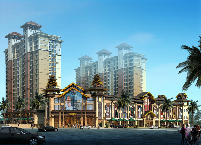 小区采用东南亚建筑风格,外立面全部贴瓷砖,整个小区看起来非常大气、高贵。园林采用的是泰式皇家园林风情,强调园林与建筑的紧密结合,突显泰式园林的尊贵气质。