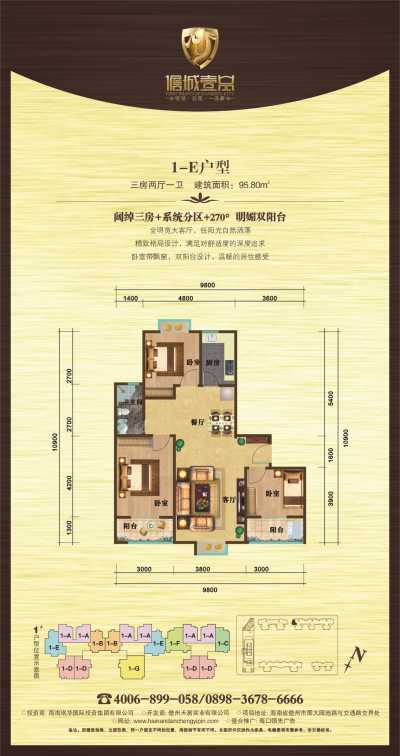 儋城壹品户型面积规划从49平米到126平米的一房至三房等多款户型,满足市场客户的各种需求;所有户型均做到南北通风、明厨明卫、外赏镜湖、内瞰泰式皇园的双园景之境。