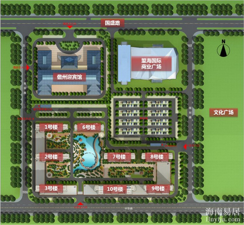 儋州望海国际广场(简称“儋州望海”)项目位于儋州市城北新区,国盛路与广场西路交界处,东面紧临主8万平方米的市政休闲广场——文化广场,西接另一商业地产项目名都天街(水岸名都3期),北临儋州城北新区主干道国盛路,南接恒大名都2期。